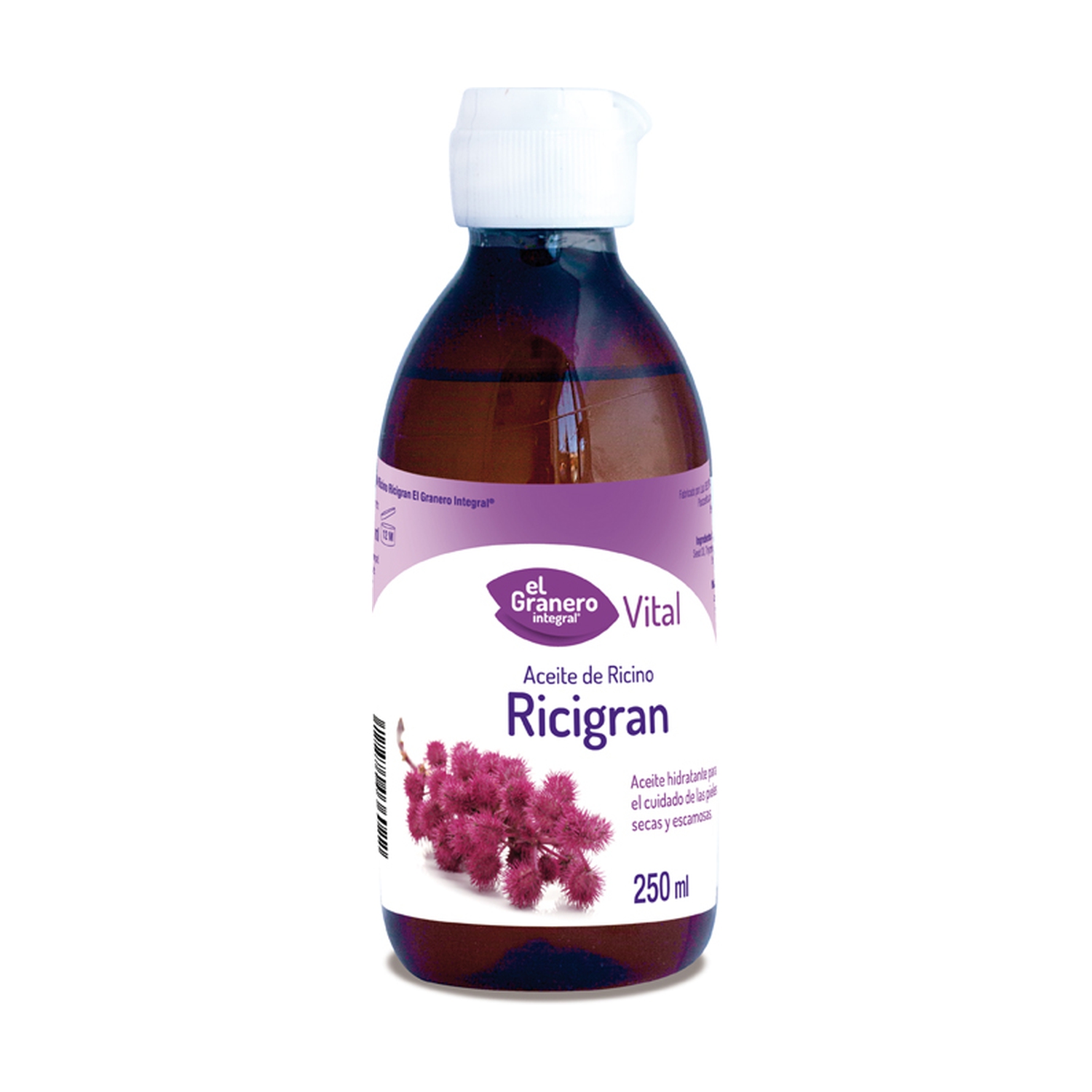 Ricigran Aceite de Ricino de El Granero Integral sirve como hidratante para el cuidado de pieles secas y escamosas.